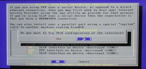 IPV6の設定なんて初耳これも後で設定可能のようですので「NO」にしました